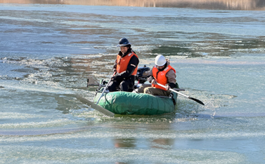 不安定なボートに乗りながら氷を除去するのはとても困難な作業。適切な計測環境を整えるまでに半日を要しましたが、正確なデータを取得するためには妥協できない工程です。